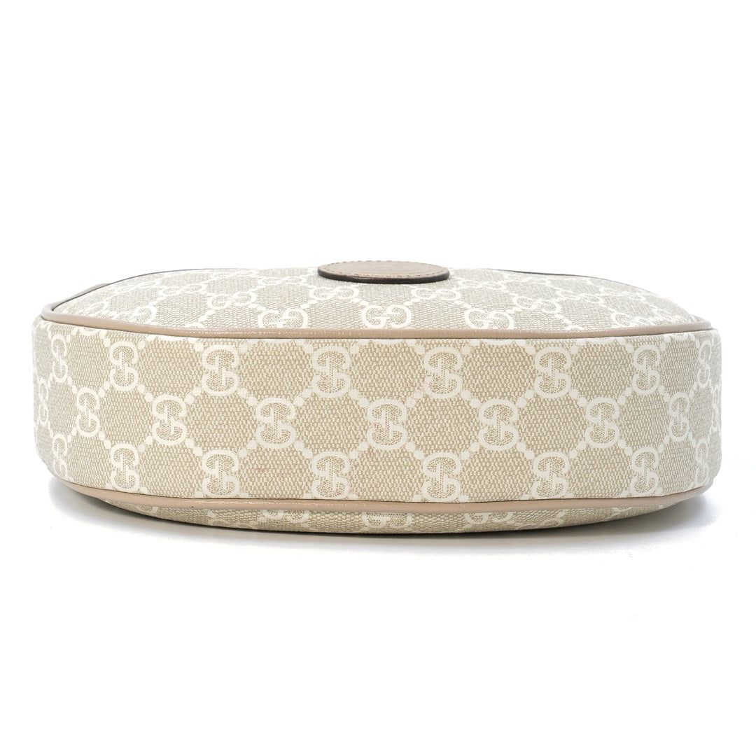 GUCCI GG Half-Moon-Shaped Mini Bag in beige GG Supreme canvas with leather trim