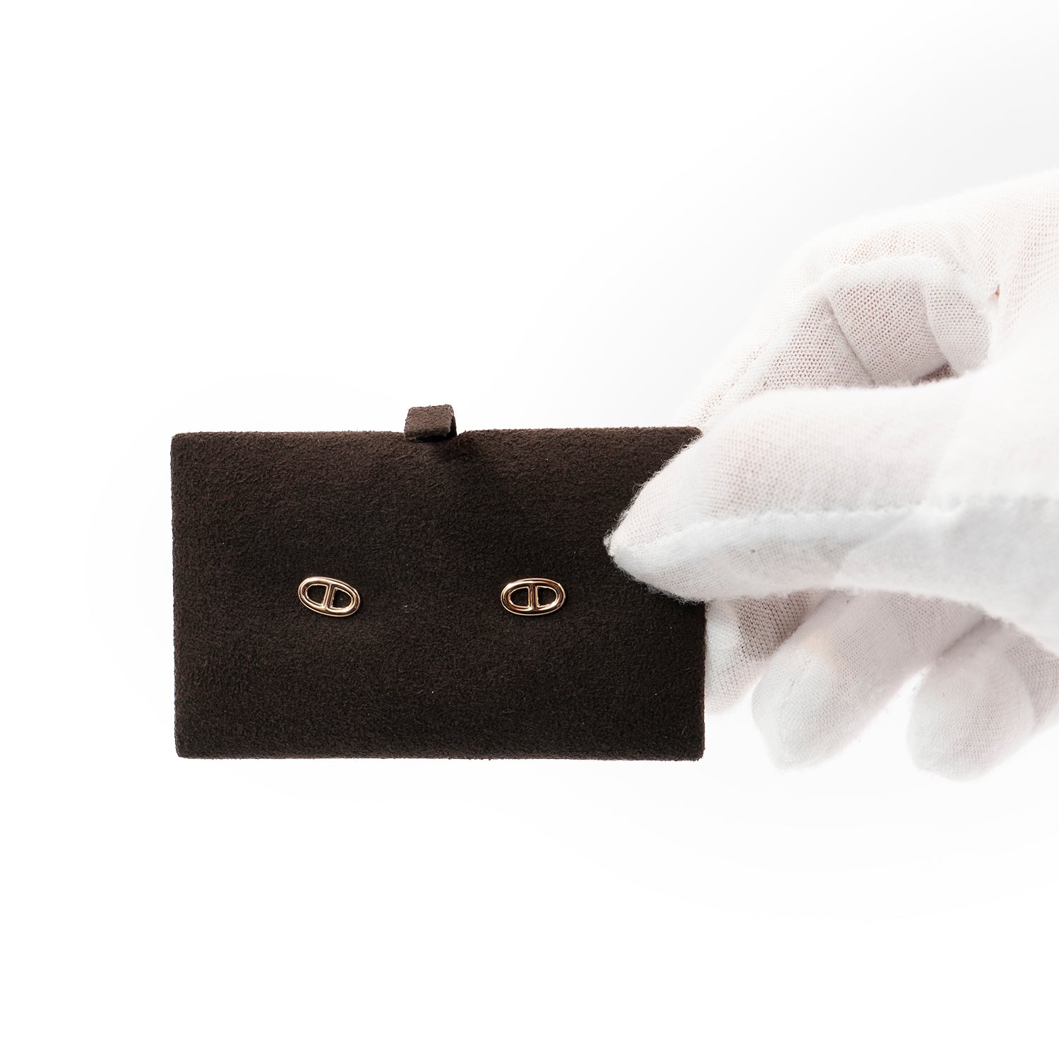 The Hermès Farandole Earrings in 18K rose gold exemplify the Maison’s signature elegance and exceptional craftsmanship. Designed as very small stud earrings, they are part of the Farandole collection, renowned for its delicate geometric chain-link motif that reflects Hermès’ meticulous attention to detail.