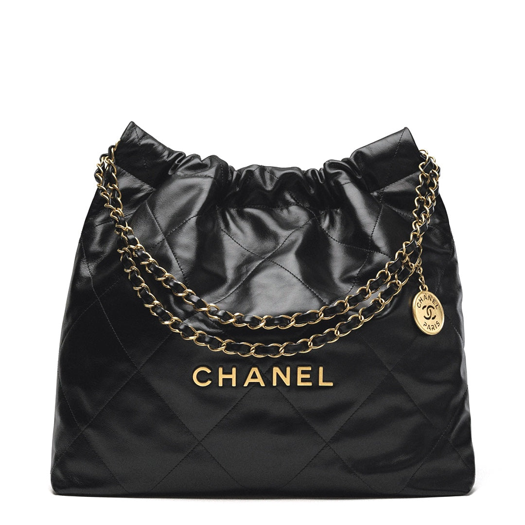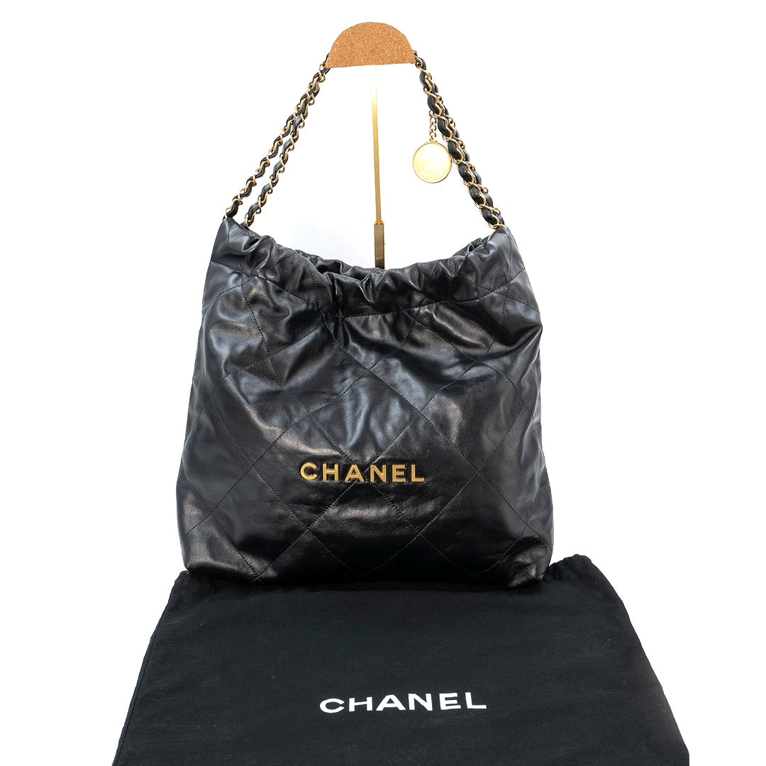 Chanel 22 Medium Handbag in Black Color with Shiny Calfskin & Gold-Tone Hardware