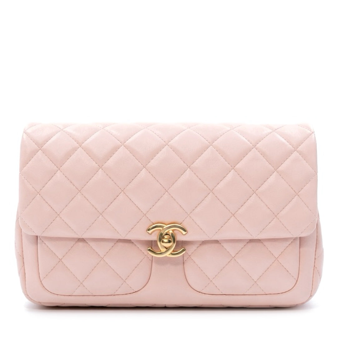 This elegant Chanel Classic Flap Bag is crafted from soft pink lambskin leather, offering a timeless and feminine appeal. Featuring the iconic diamond quilting and signature interlocking CC turn-lock in gold-tone hardware, this piece reflects Chanel’s heritage of refined luxury. The distinctive front pockets add both character and functionality, making this seasonal design a standout within the classic Chanel collection.