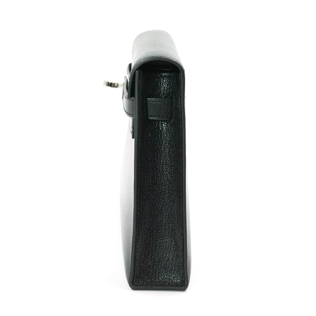 Accented with palladium hardware, the design highlights the signature Kelly turn-lock closure, refined sangles, and clean structural lines that define the Kelly family. The Kelly Élan features a slim, streamlined profile with a well-organized interior sized for essentials, making it ideal as a luxury clutch or shoulder bag. Its refined proportions and polished finish make it especially desirable among collectors and modern minimalist wardrobes.