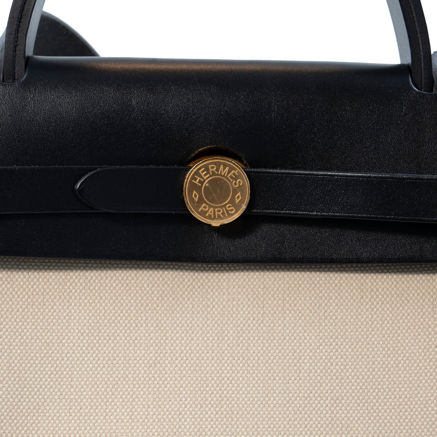 Hermès Herbag Zip 31 Retourne Bag in Béton Canvas with Noir Veau Bétis Leather Trim and Gold Hardware