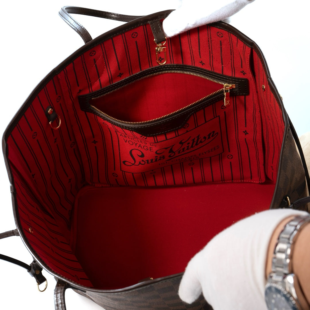 Louis Vuitton Neverfull MM Tote Bag in Damier Ebene Canvas with Brown Leather Trim
